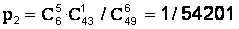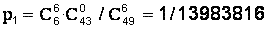 p = p1+p2+p3 = 13804/13983816 = 1/1013 = 0.00098714. Asadar, daca